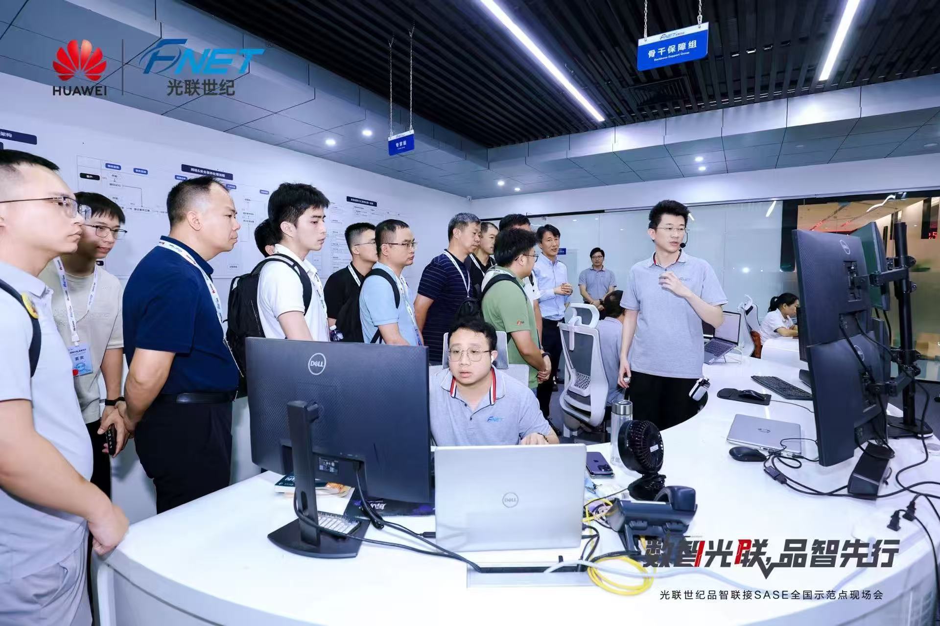 会上,光联世纪品智联接SASE全国示范点正式发布。所有参会嘉宾与媒体共同走进光联世纪品智联接SASE全国样板点,现场参观了光联与华为合作展墙、网安运营中心、联合创新实验室、SASE体验点等重点内容,探讨安全架构革新,共绘数智未来蓝图。